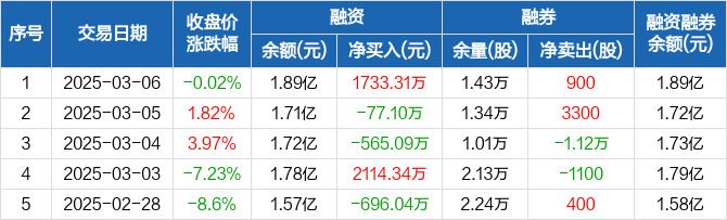 龙旗科技:融资净买入1733.31万元,融资余额1.89亿元(03-06)