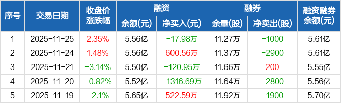 龙旗科技:融资净偿还17.98万元,融资余额5.56亿元(11-25)