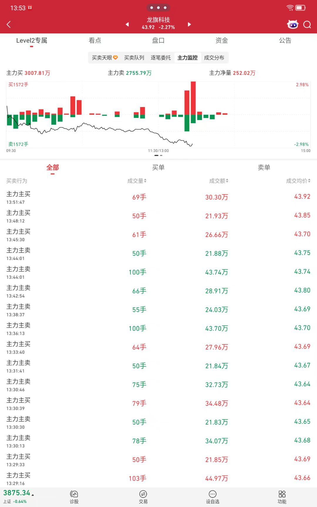 我还是建议开个Level 2 的行情,