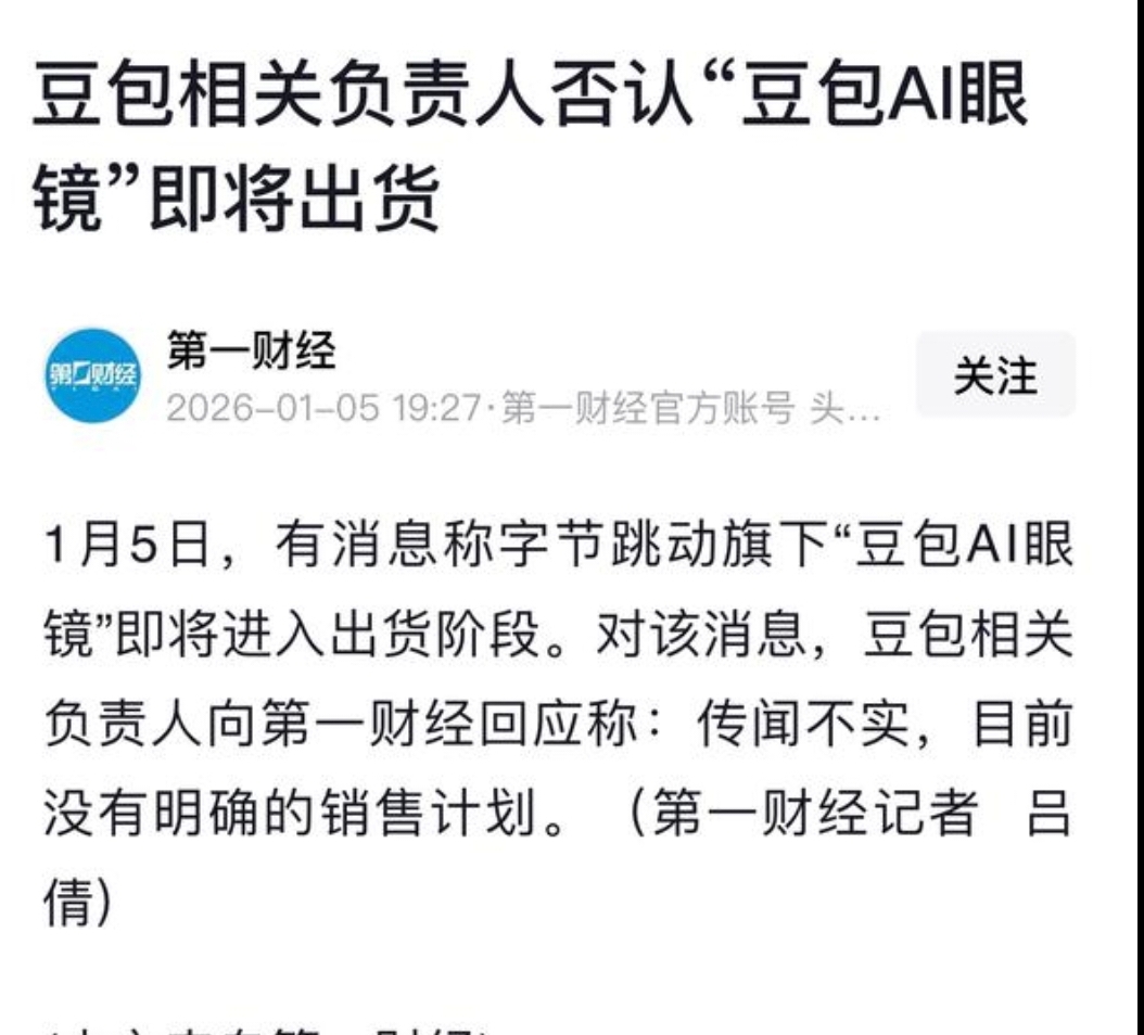 不知道那些说辟谣的大聪明是怎么看的,“没有马上出货计划”说明豆包眼镜已经有了