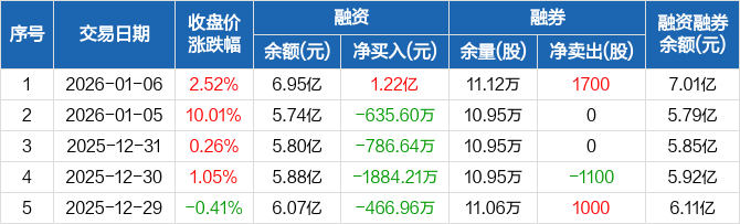 龙旗科技:融资余额6.95亿元,创历史新高(01-06)