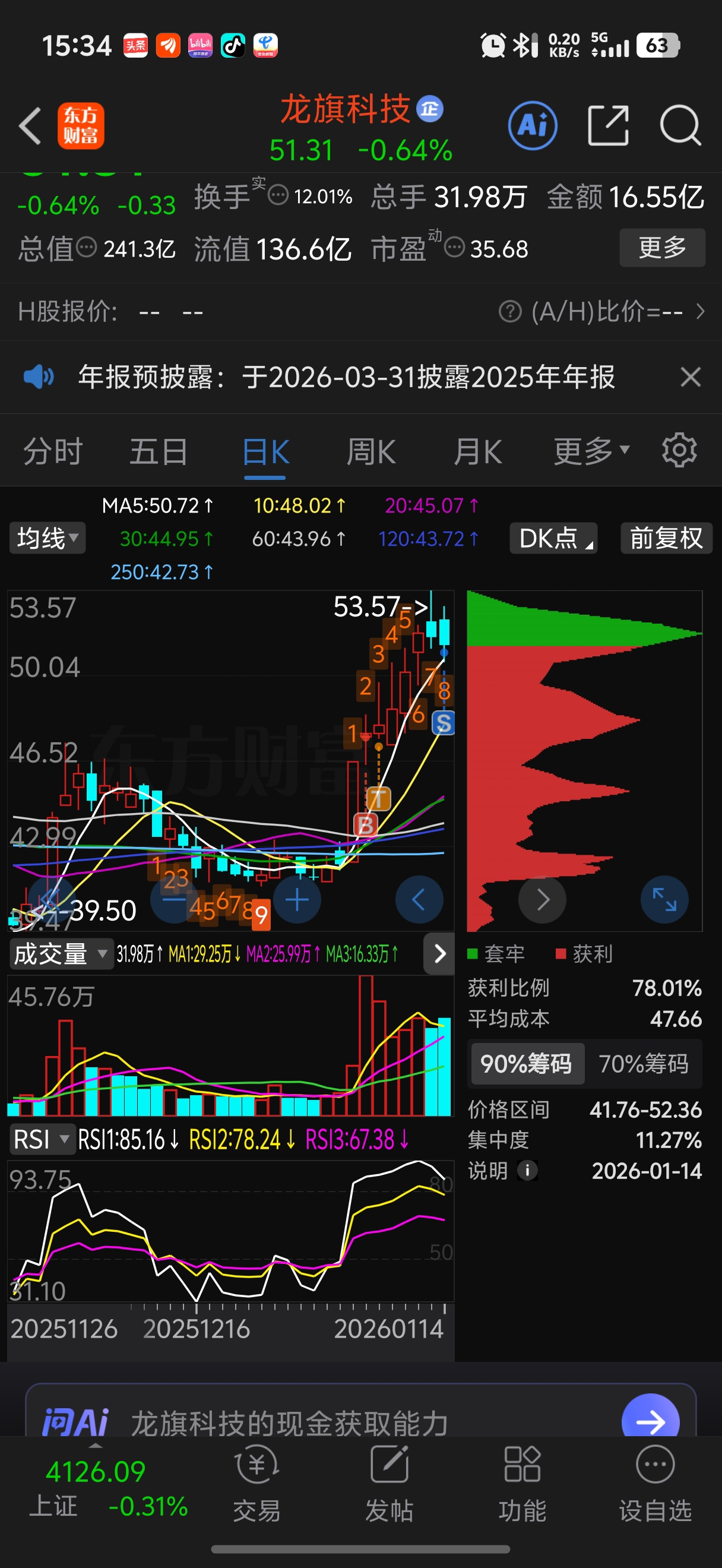 $龙旗科技(SH603341)$ 天大利好涨不过杂毛,先走了,调整好再来