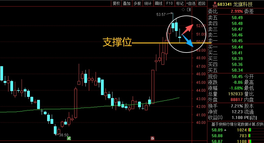 $龙旗科技(SH603341)$ 近期反弹的走势比较强,连续拉升后,最近几天在高位做一个小幅的回调整理,接下来重点看脚底横线位置的支撑,能稳住都没问题,但有效跌破就要注意短线的回落调整风险了,需要控制仓位应对潜在的破位下杀。#炒股日记# #收盘点评#