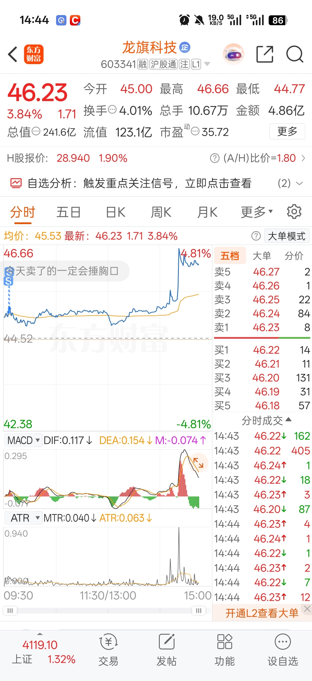 $龙旗科技(SH603341)$ 可以涨了,因为我走了