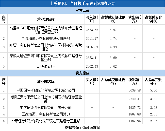 沪股通现身龙虎榜,星德胜换手率达39.39%(12-23)