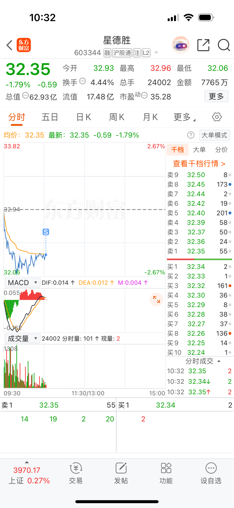 $星德胜(SH603344)$ 赶紧止损。