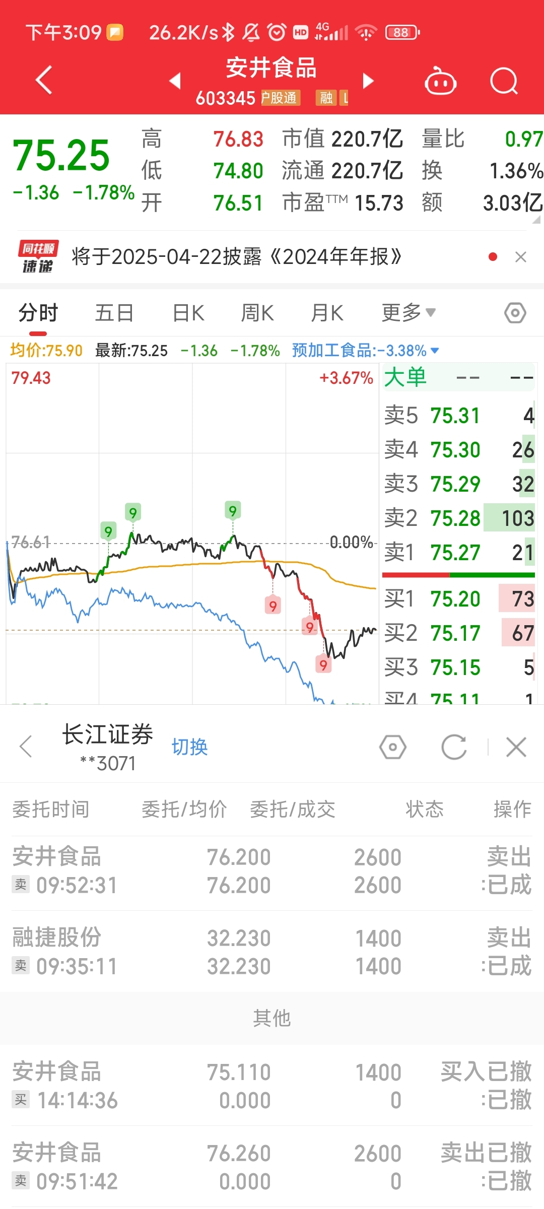 $安井食品(SH603345)$ 这几天走势看就知道是无效行情,早盘还是坚决清了手上两只票的一大半仓位,等大盘跌下来再说。