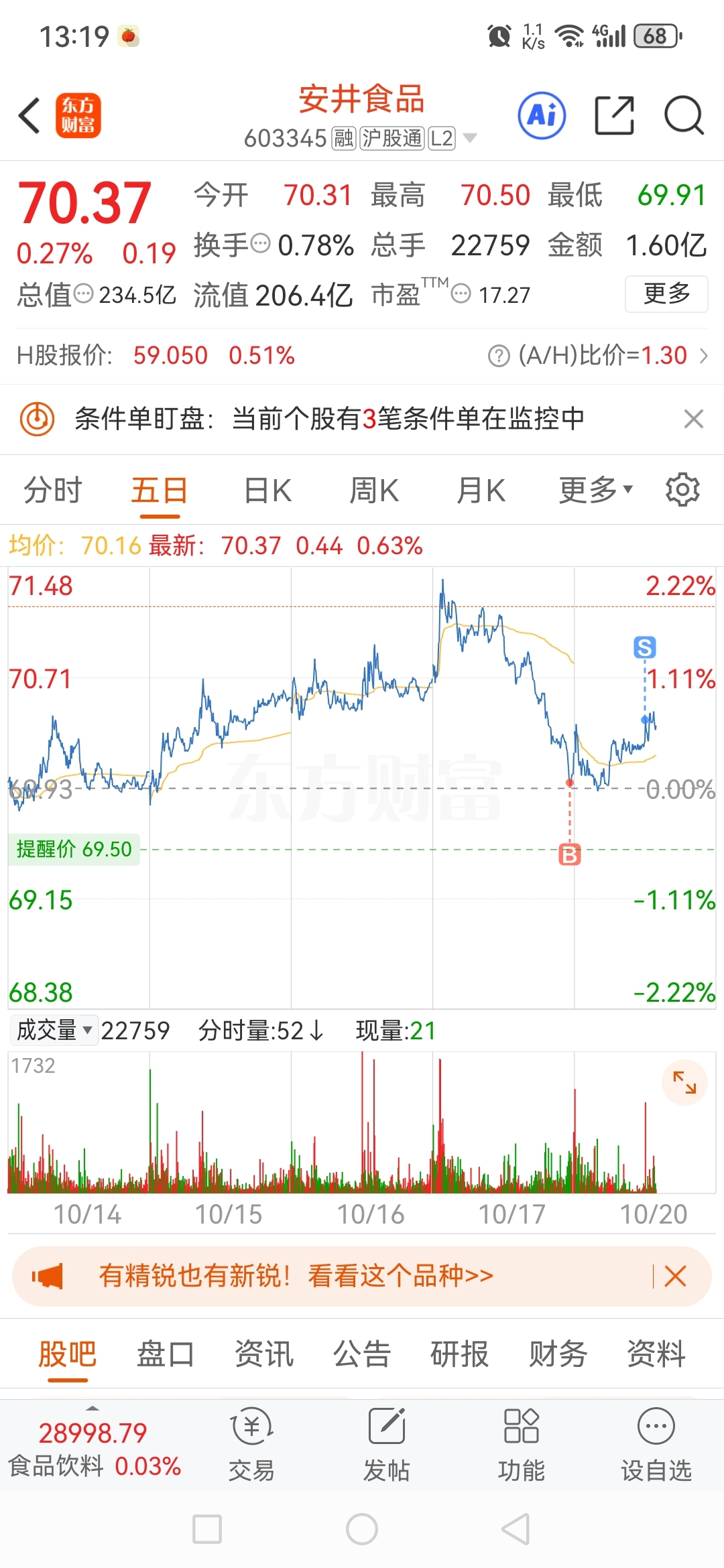 $安井食品(SH603345)$ 做T自救