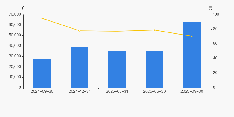 截至2025年9月30日,公司最新A股总股本为3.33亿股,其中流通股本为2.93亿股。户均持有流通股数量由上期的8285股下降至4641股,户均流通市值32.72万元。