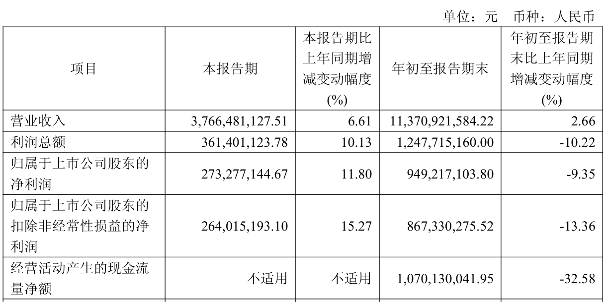 10月28日晚间,安井食品(603345)公告,2025年第三季度实现营业收入37.66亿元,同比增长6.61%;归属于上市公司股东的净利润2.73亿元,同比增长11.80%。前三季度实现营业收入113.71亿元,同比增长2.66%;归属于上市公司股东的净利润9.49亿元,同比下降9.35%。