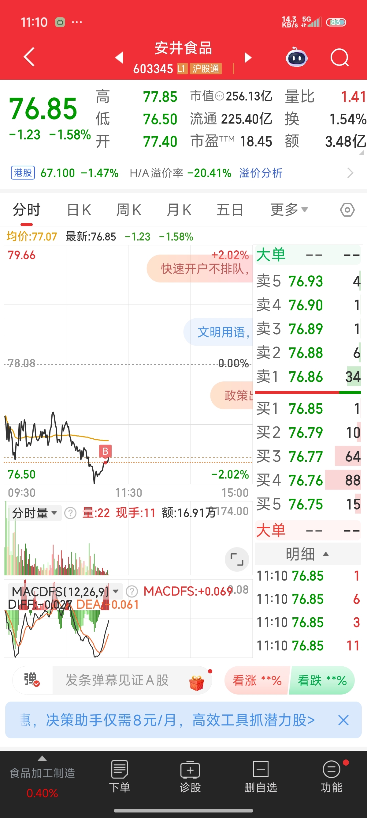 $安井食品(SH603345)$ 安井食品买一点点底仓!