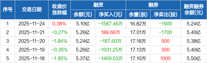 安井食品:融资净偿还1587.46万元,融资余额5.1亿元(11-24)