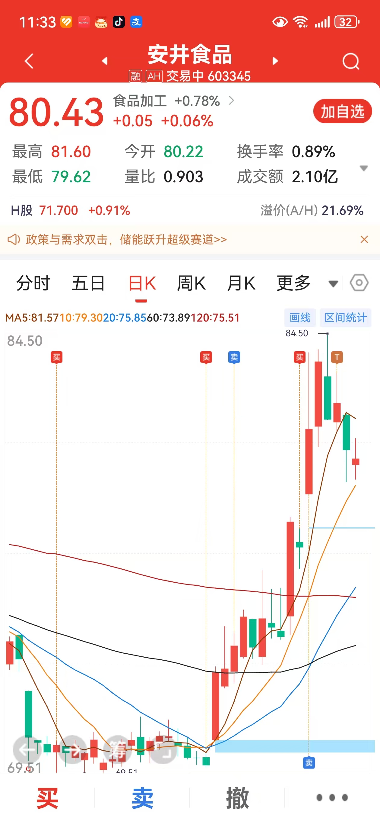 还好两只都买了,但是计划全部被打乱,本来计划安井先拉个板加速下我全部出了,等海欣下来走二浪接上,吃两波丸子,计划全部打乱。同样海峡,而且你是龙头啊,就因为盘子大没人关顾啊!!