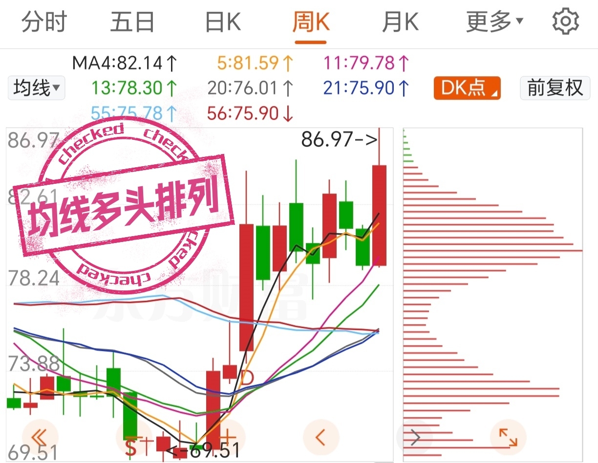 周线均线多头排列,这参数调得清晰明朗