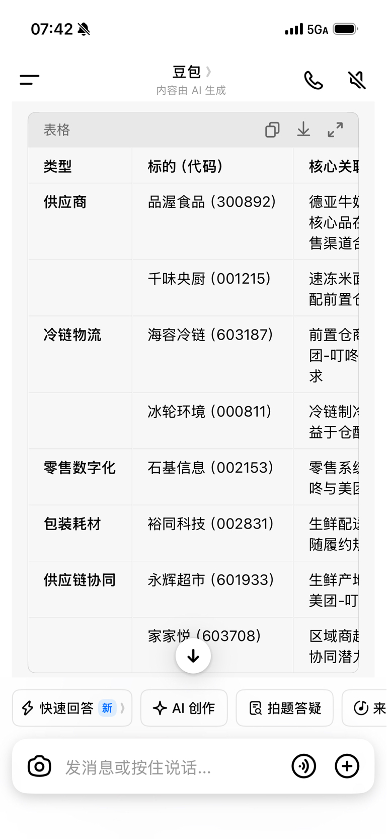 $安井食品(SH603345)$ @安记食品 @国联水产 @品渥食品 美团收购叮咚买菜概念股