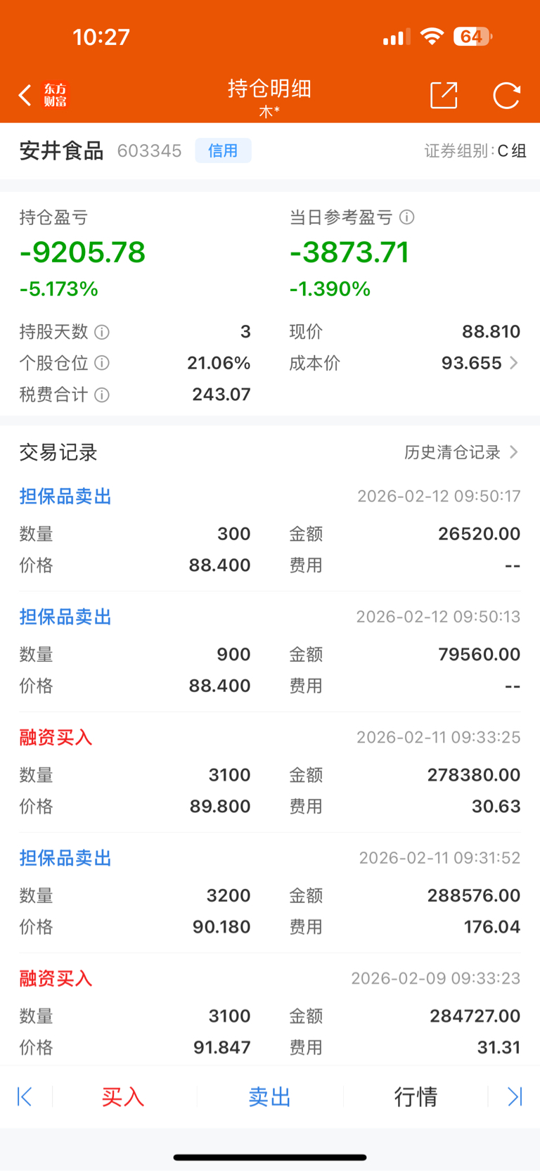 $安井食品(SH603345)$ 谁有我的成本高,刚拿几天就被套住了