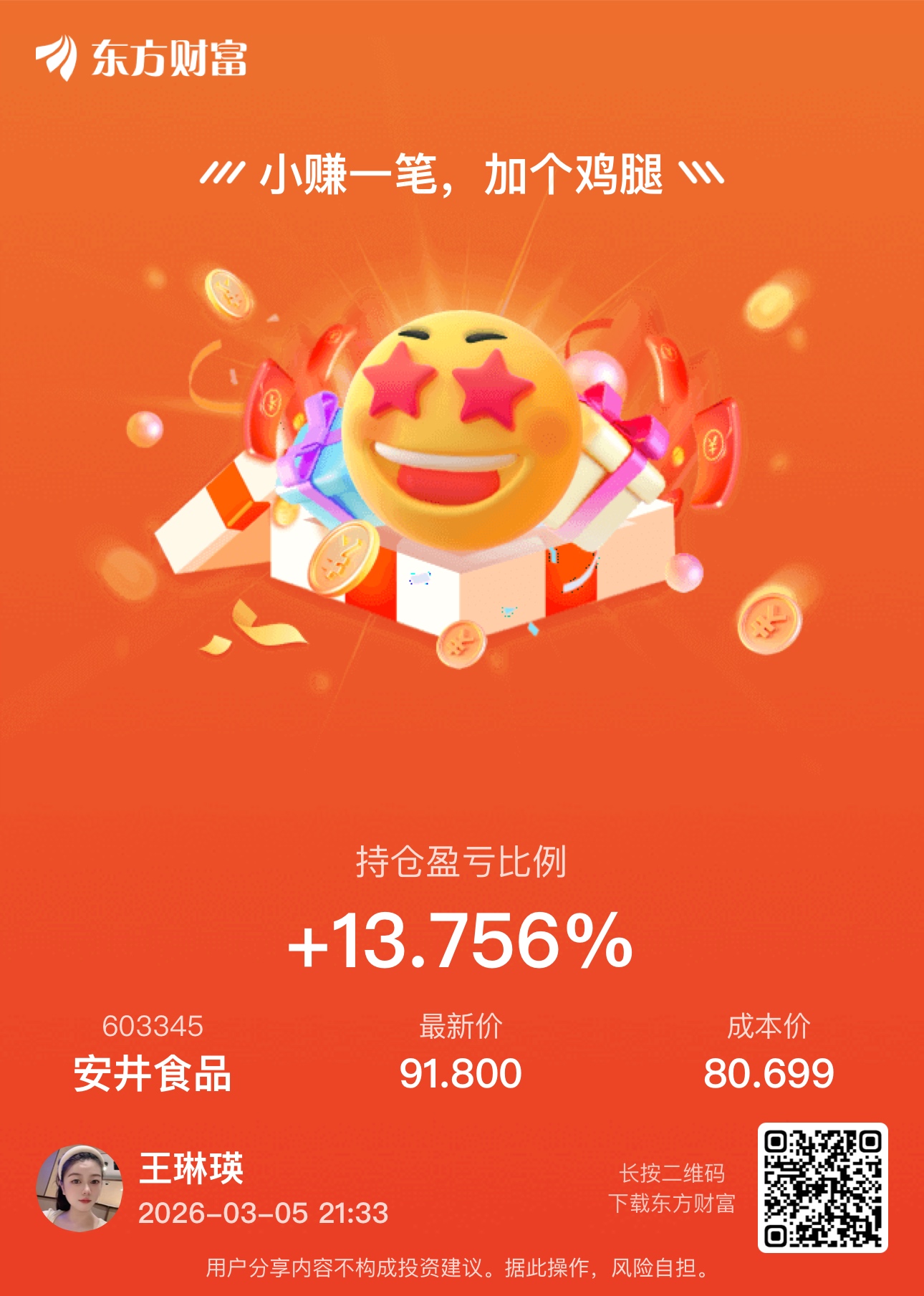 温馨提示: 1.根据《证券法》规定,禁止编造、传播虚假信息或者误导性信息,扰乱证券市场;2.用户在本社区发表的所有资料、言论等仅代表个人观点,与本网站立场无关,不对您构成任何投资建议。用户应基于自己的独立判断,自行决定证券投资并承担相应风险。《东方财富社区管理规定》
