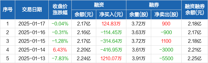 文灿股份:融资净买入124.83万元,融资余额2.17亿元(01-17)