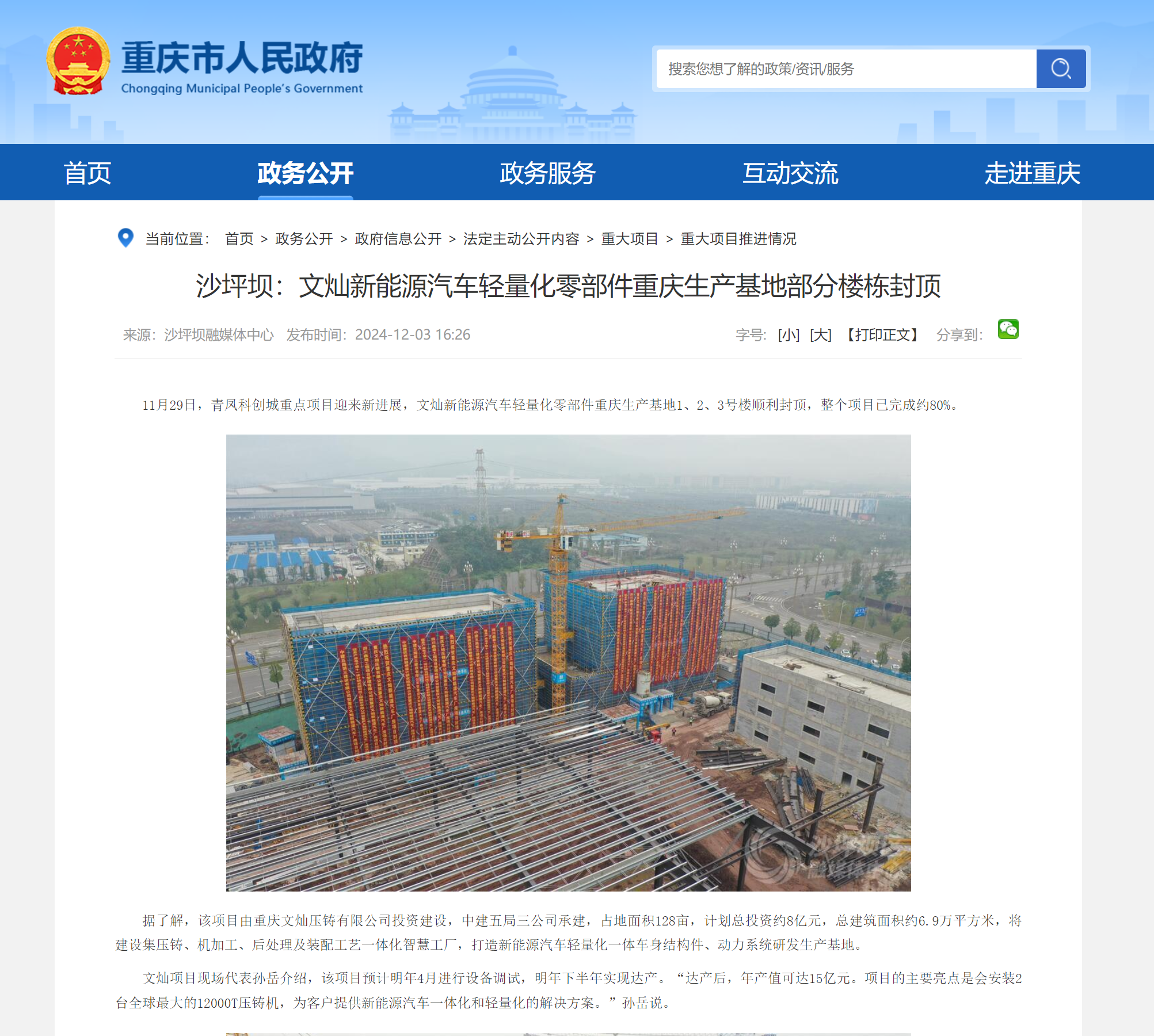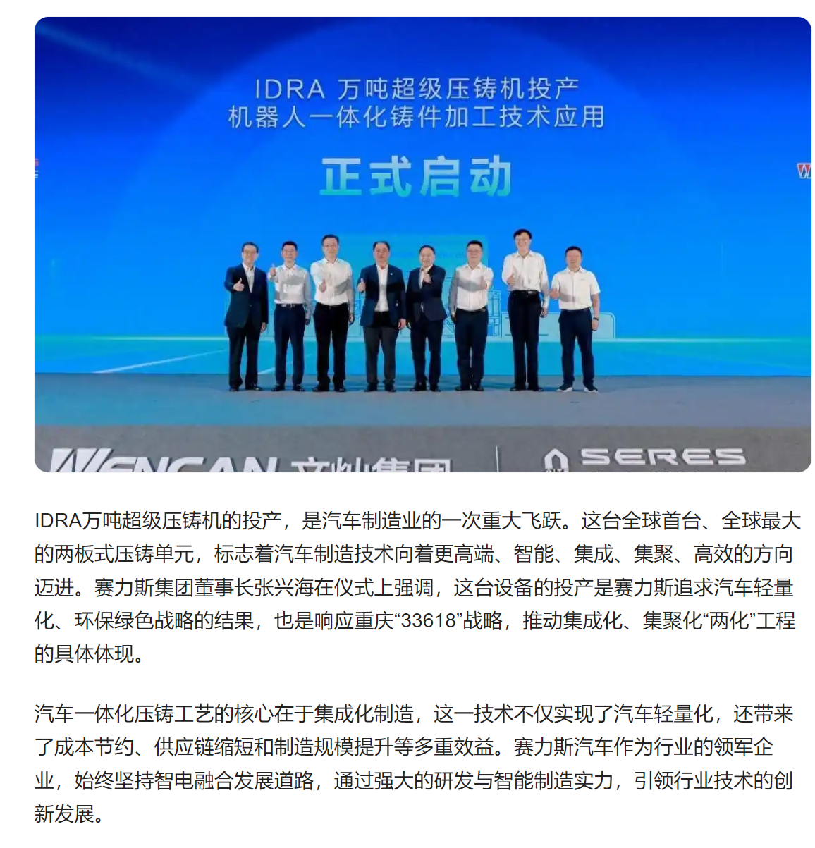 这一波文灿的行情是跟赛力斯的,坐标重庆,话不多说。目前赛力斯M5M7M8M9全部使用文灿股份的压铸件,两江新区第一工厂生产M5,凤凰第二工厂生产M7,两江新区第三工厂生产M8/M9.。文灿股份的智慧工厂直接就跟赛力斯在一个厂区里面,门对门那种。。。话不多说自己看
