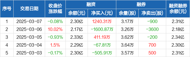 文灿股份:融资净买入1240.31万元,融资余额2.3亿元(03-07)