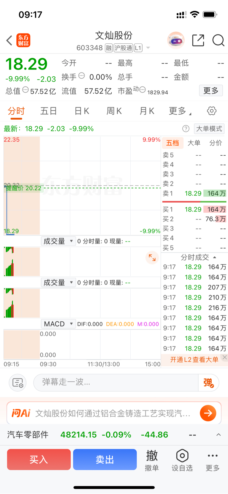 $文灿股份(SH603348)$ 牛逼,有种跌停开盘