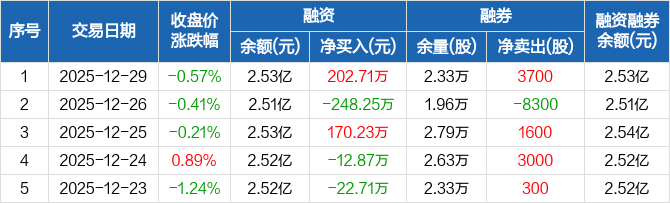 文灿股份:融资净买入202.71万元,融资余额2.53亿元(12-29)