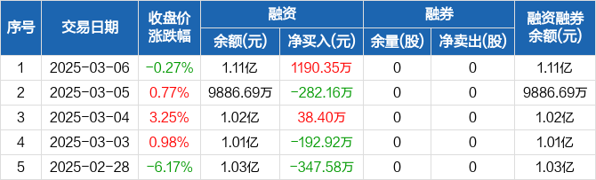 安乃达:融资净买入1190.35万元,融资余额1.11亿元(03-06)