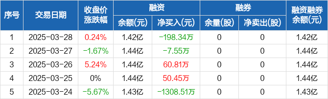 安乃达:融资净偿还198.34万元,融资余额1.42亿元(03-28)