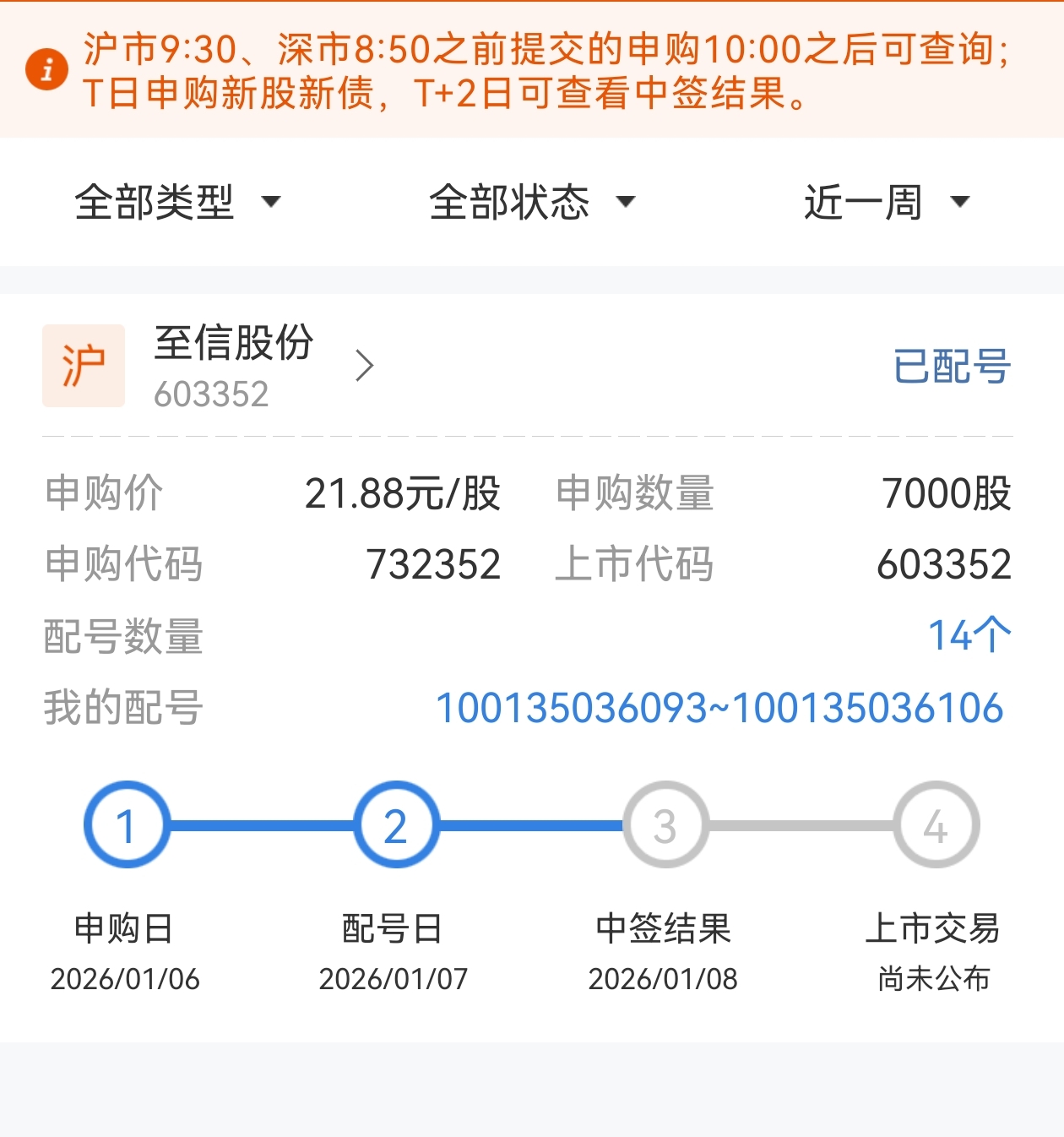 从来没有中过,求中一签回血$至信股份(SH603352)$