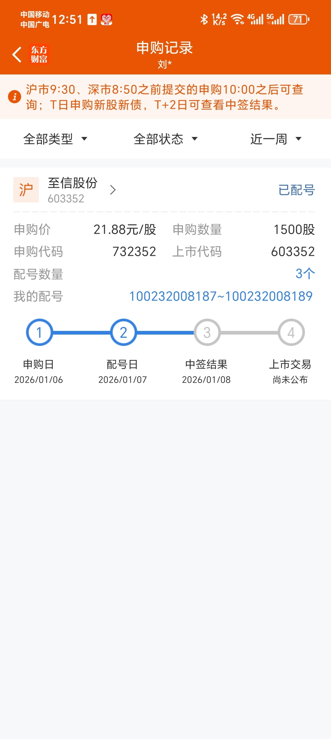 $至信股份(SH603352)$ 三个号能中吗?中了踢我一下,,