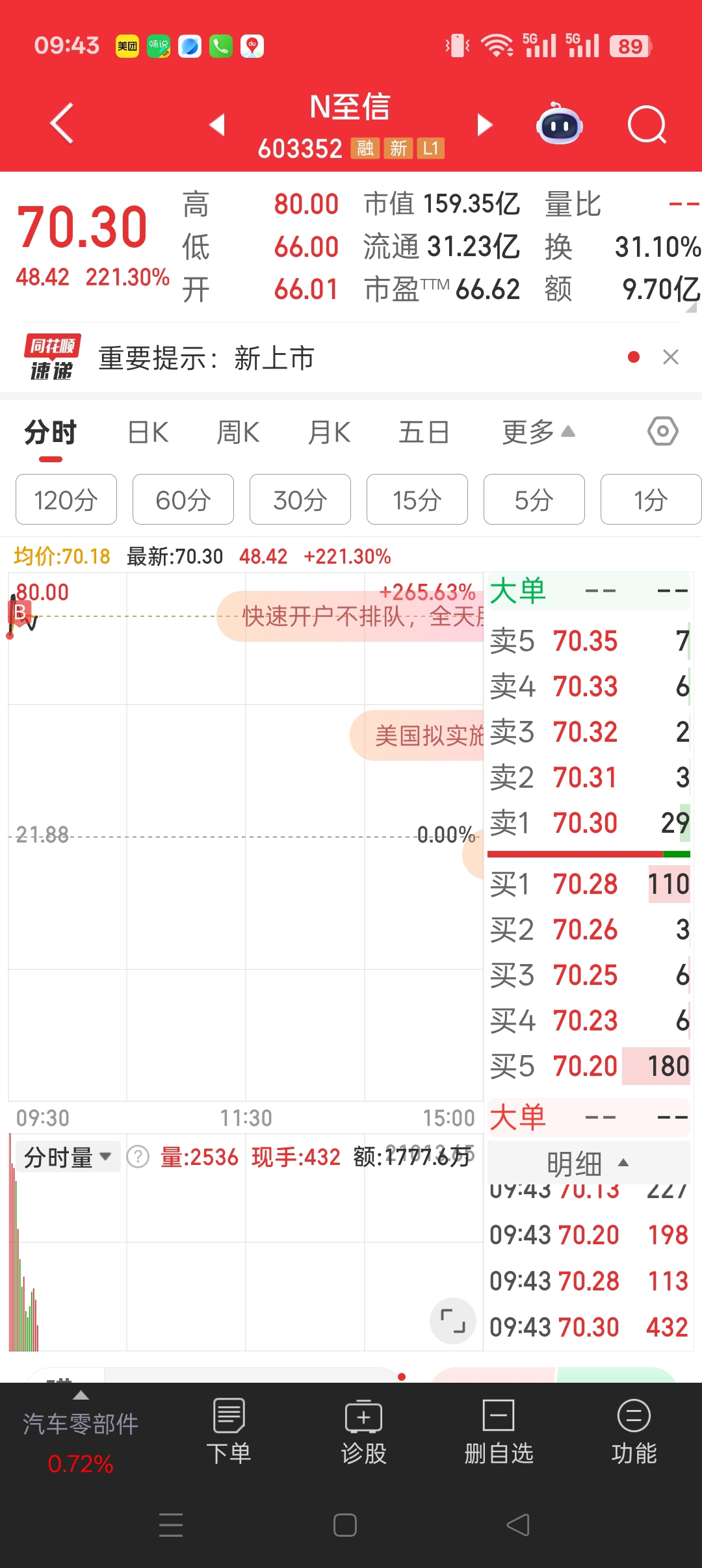 $N至信(SH603352)$ 很像盟固利,下午奔280