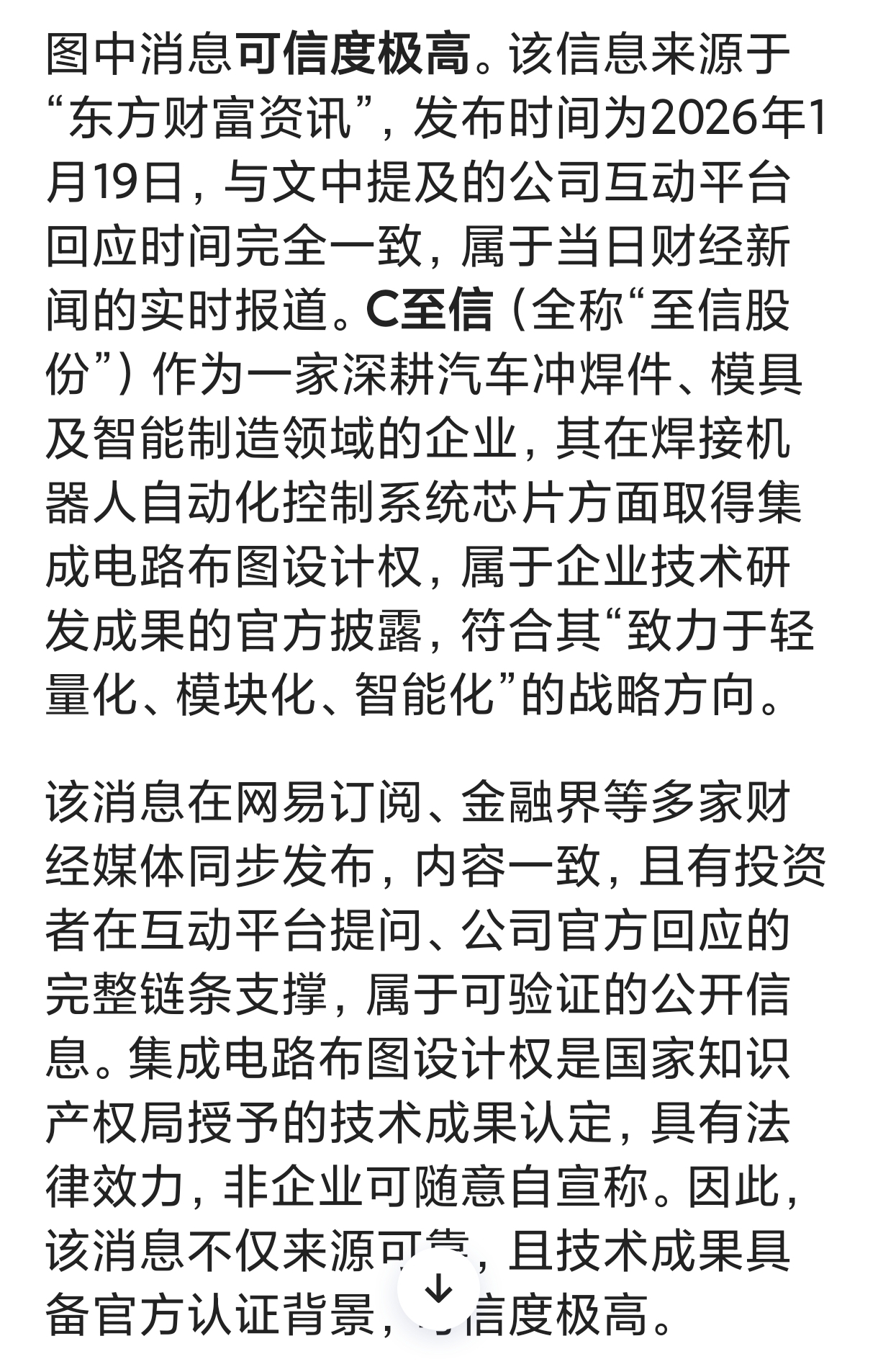 $C至信(SH603352)$ 可信度极高