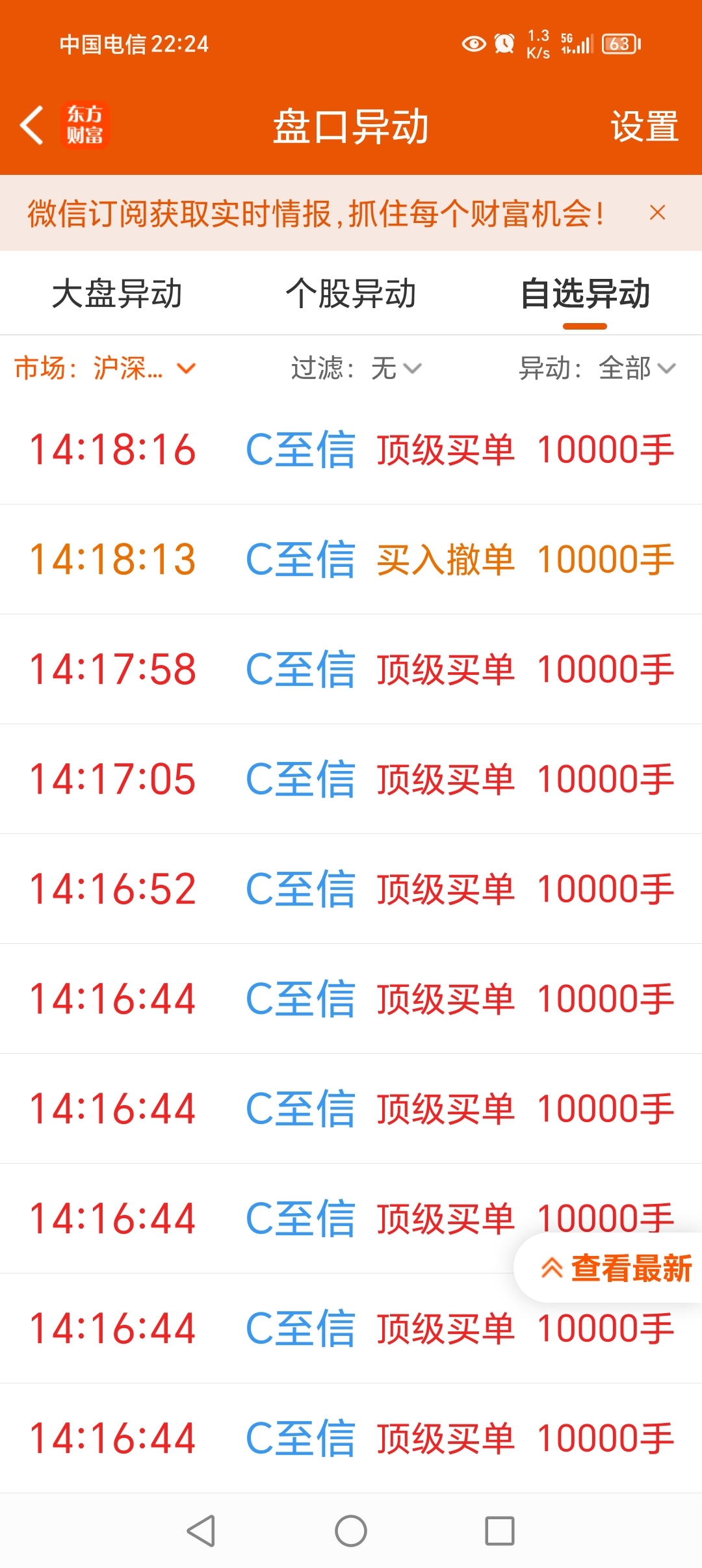 盘中这么多万手挂单啥意思?盘中段时间,我确实看到有个千手单,不停挂单撤单往上顶价