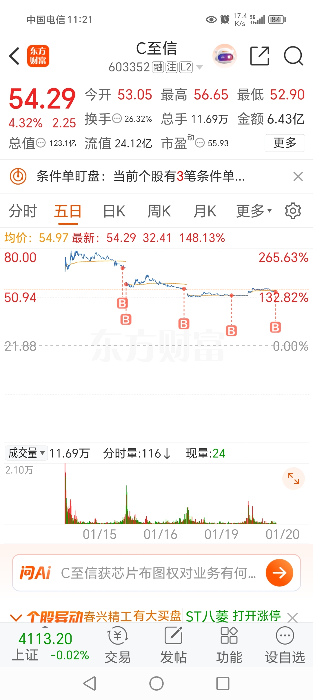 $C至信(SH603352)$ 一股没卖,刚加仓了。