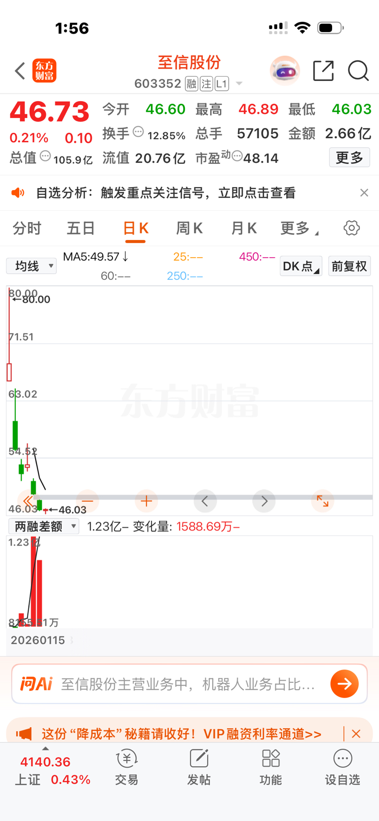 $至信股份(SH603352)$ 乖乖下来吧,这么融资抄底,怎么可能是底。加油