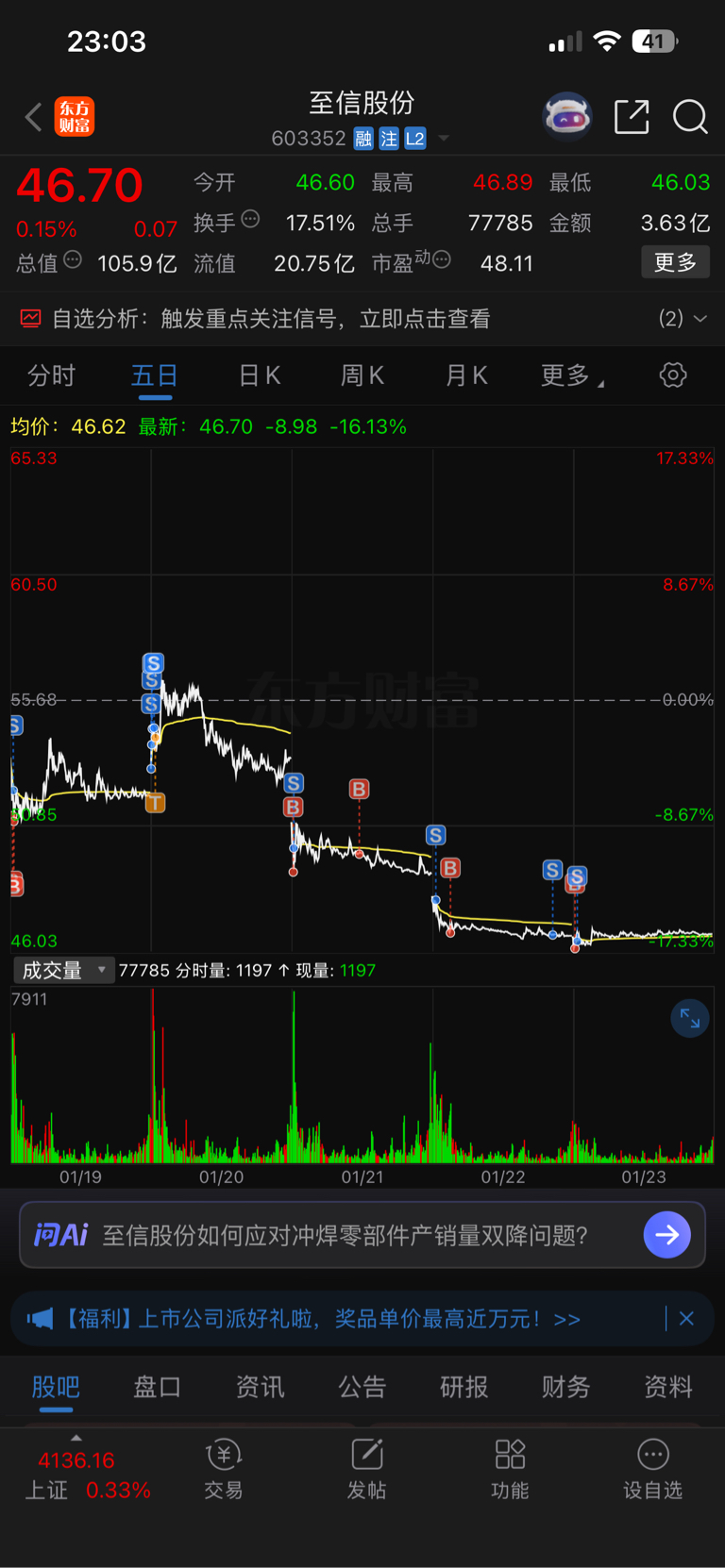 $至信股份(SH603352)$ 3层仓位,继续慢慢磨