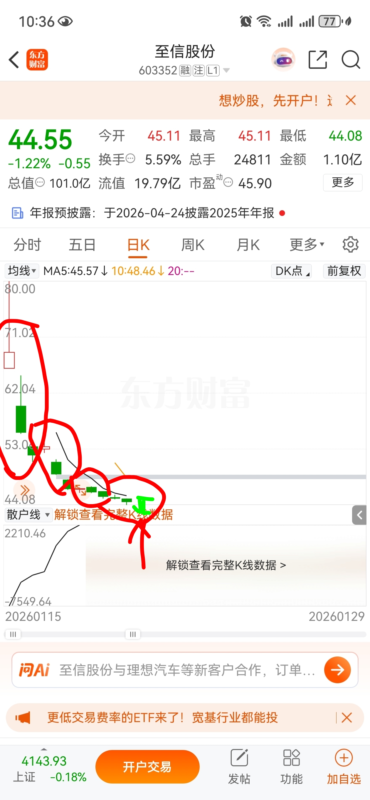 $至信股份(SH603352)$ 今天K线收阴,明天继续下跌的话,盘中低点应该是短线反弹买点,可以适当赌一把,但不宜重仓!