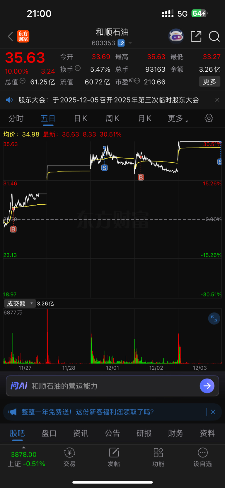 $和顺石油(SH603353)$ 我看封单少了不少,不知道我今天卖的对不对,隔以上从不卖涨停票