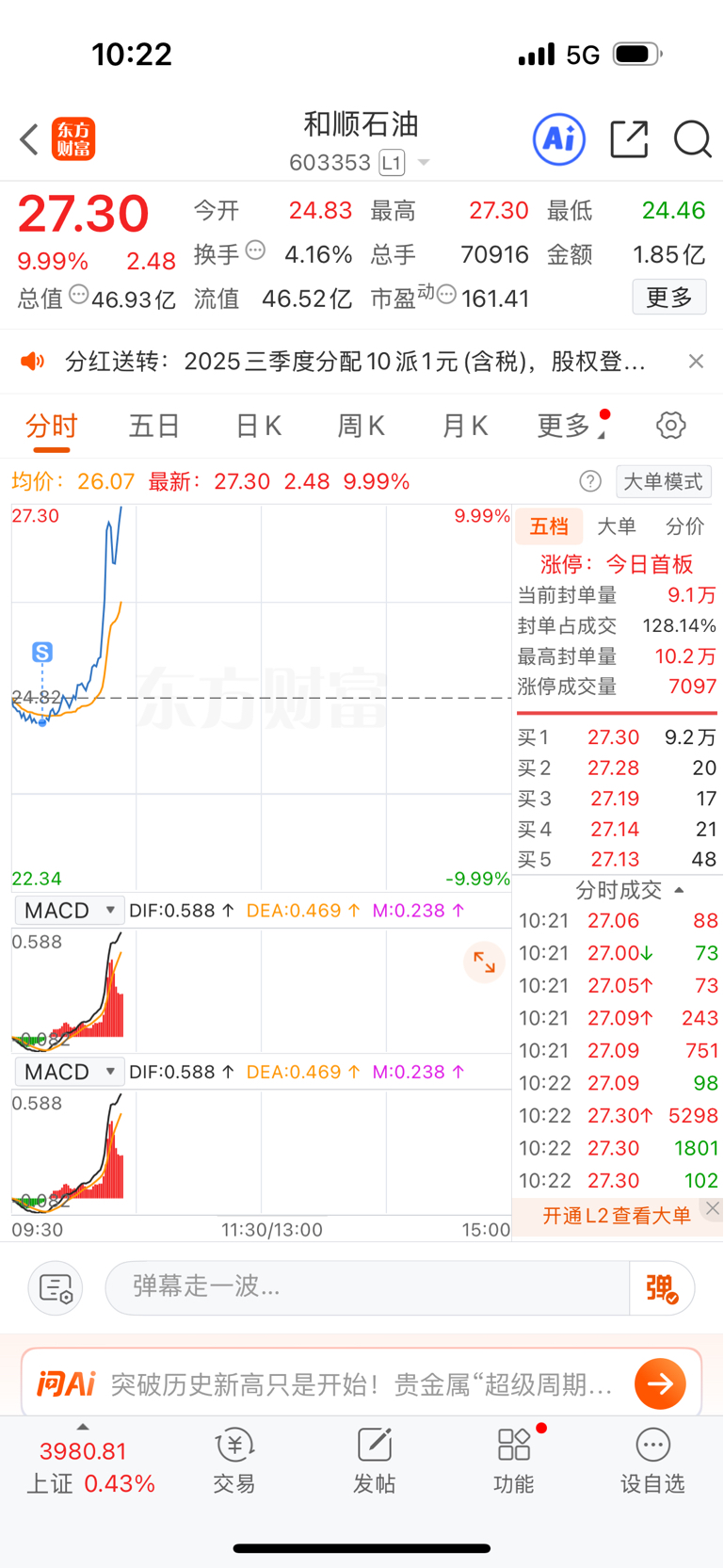$和顺石油(SH603353)$ 真就看上了我这三瓜两枣?
