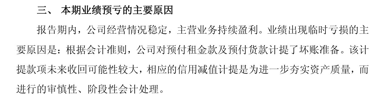 亏损原因是预付租赁和预付款坏账,主营业务持续盈利稳定。你买这个股票是看中的什么,