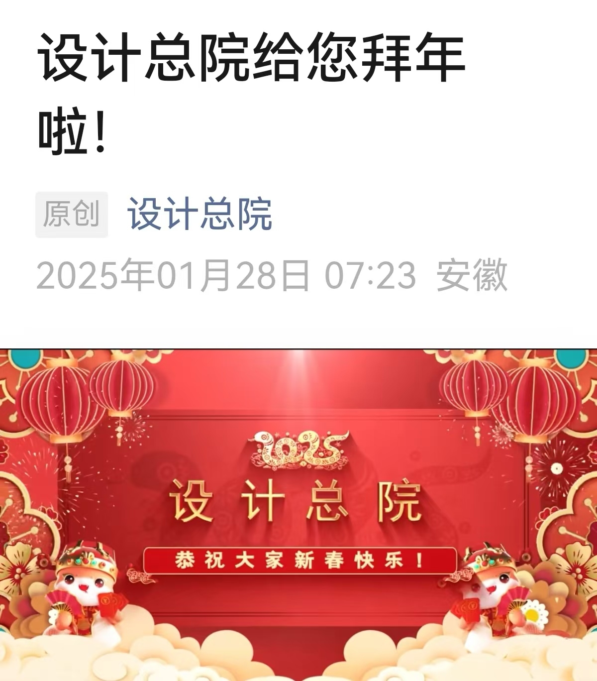 $设计总院(SH603357)$ 缺少一个市值管理部(应该在职能部)向全体股民拜年的环节。希望新的一年里鸿运当头,设计总院在安徽崛起大发展的时代里市值突破200亿元。