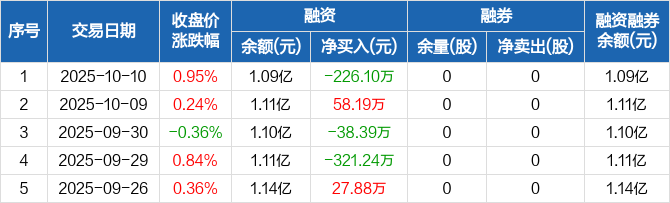 设计总院:融资净偿还226.1万元,融资余额1.09亿元(10-10)