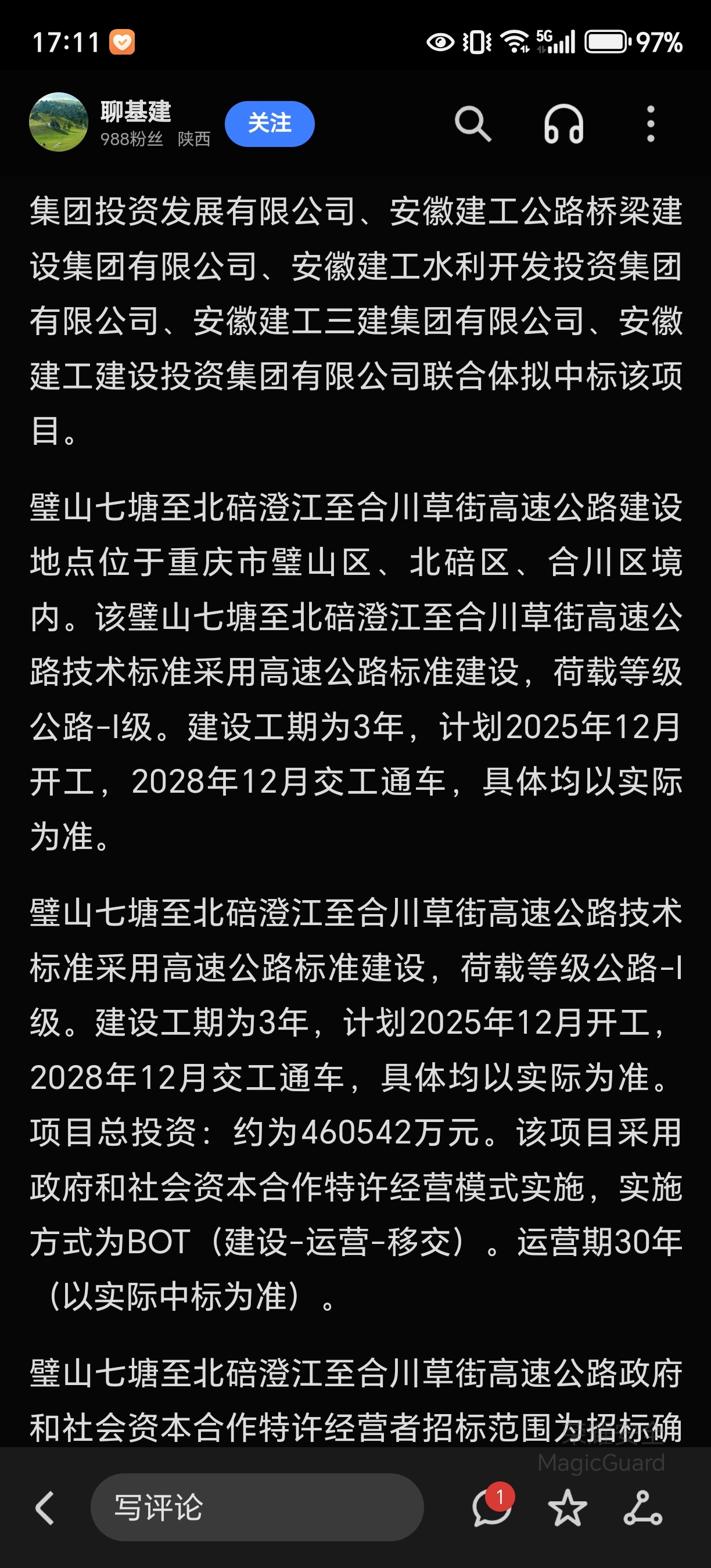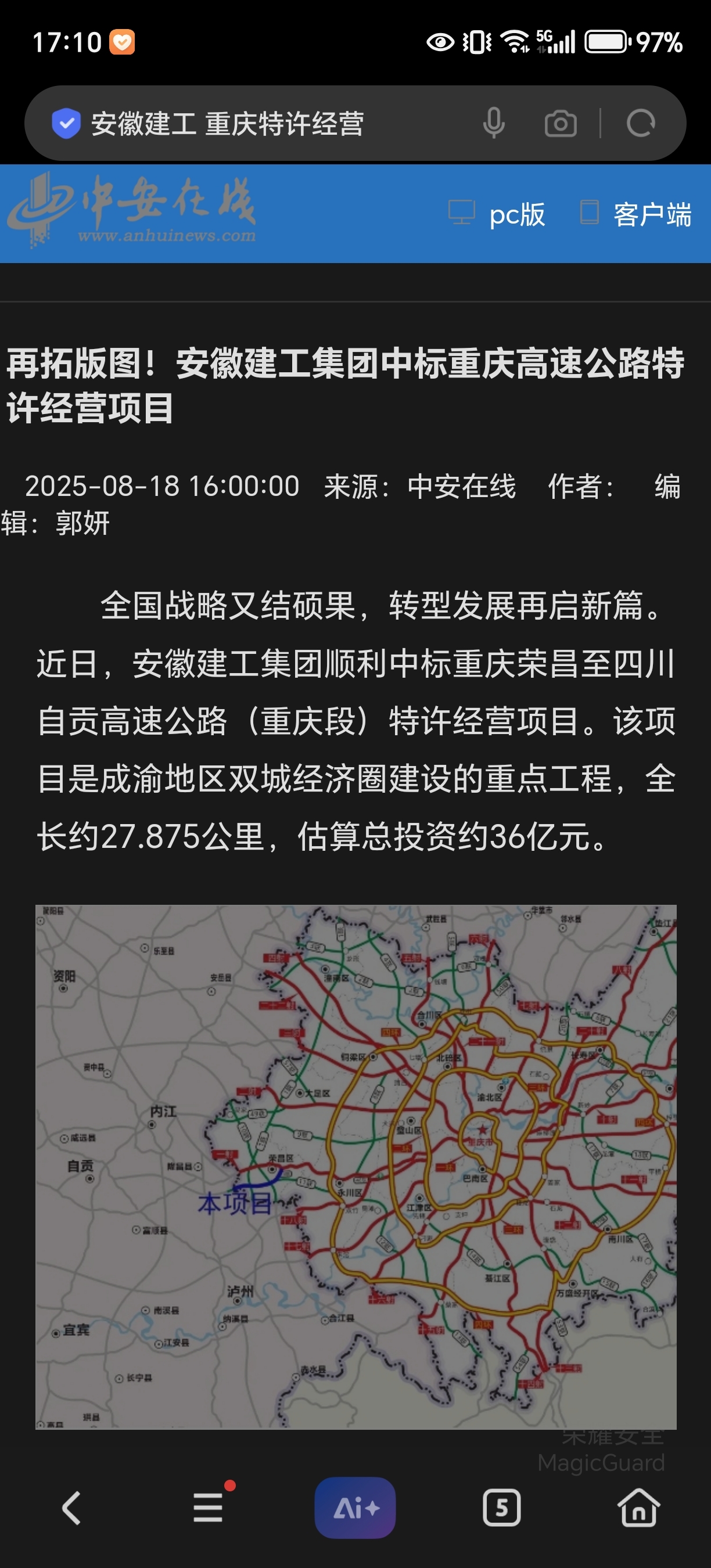 安徽建工中标重庆两条高速都特许经营总计82亿合肥到六安叶集高速也是安徽建工中标的