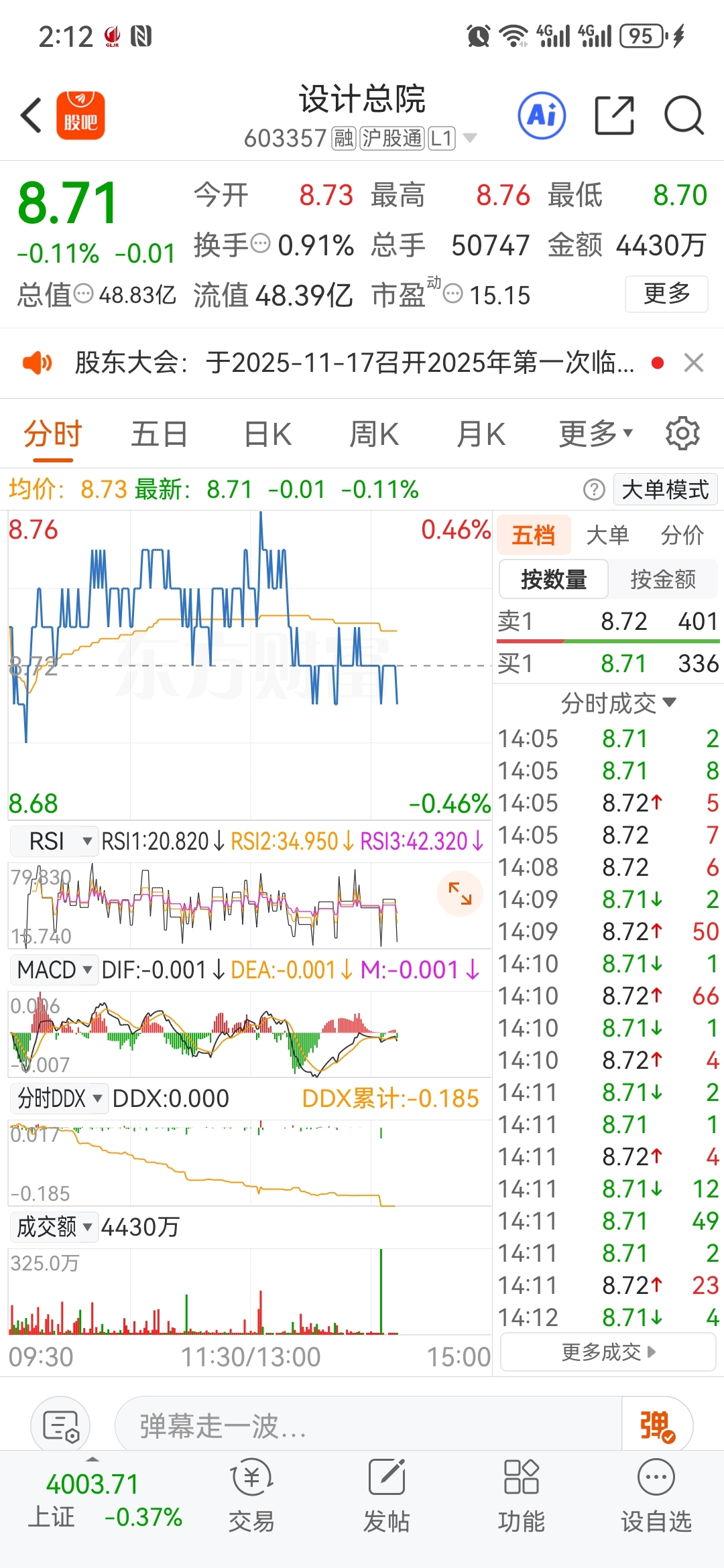 $设计总院(SH603357)$ 两分钟没有一笔成交,人气不行啊!