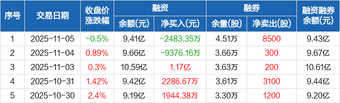 华达科技:融资净偿还2483.35万元,融资余额9.41亿元(11-05)