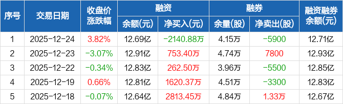 华达科技:融资净偿还2140.88万元,融资余额12.69亿元(12-24)