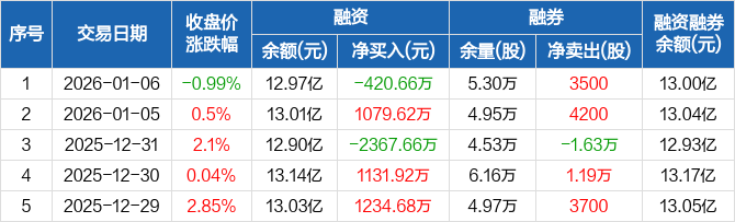 华达科技:融资净偿还420.66万元,融资余额12.97亿元(01-06)