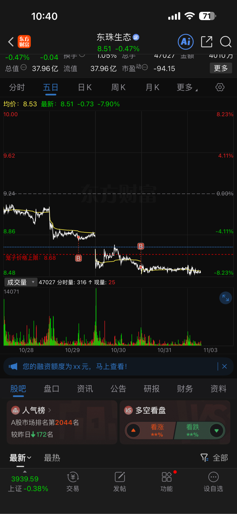 $东珠生态(SH603359)$ 量化阴跌已开启,各位别进,进来就会被阴……