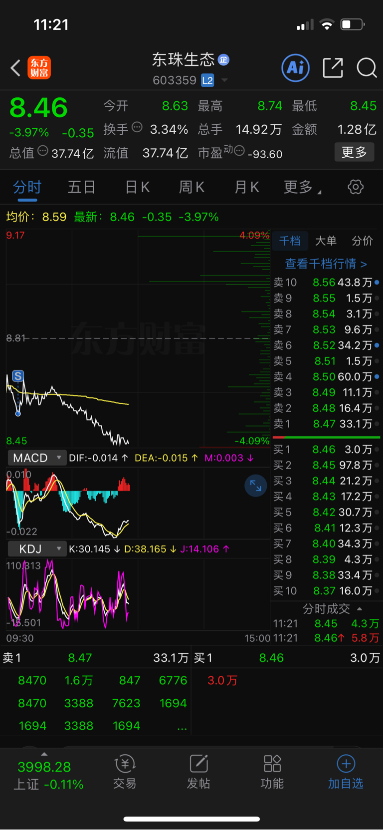 $东珠生态(SH603359)$ 还好跑得快