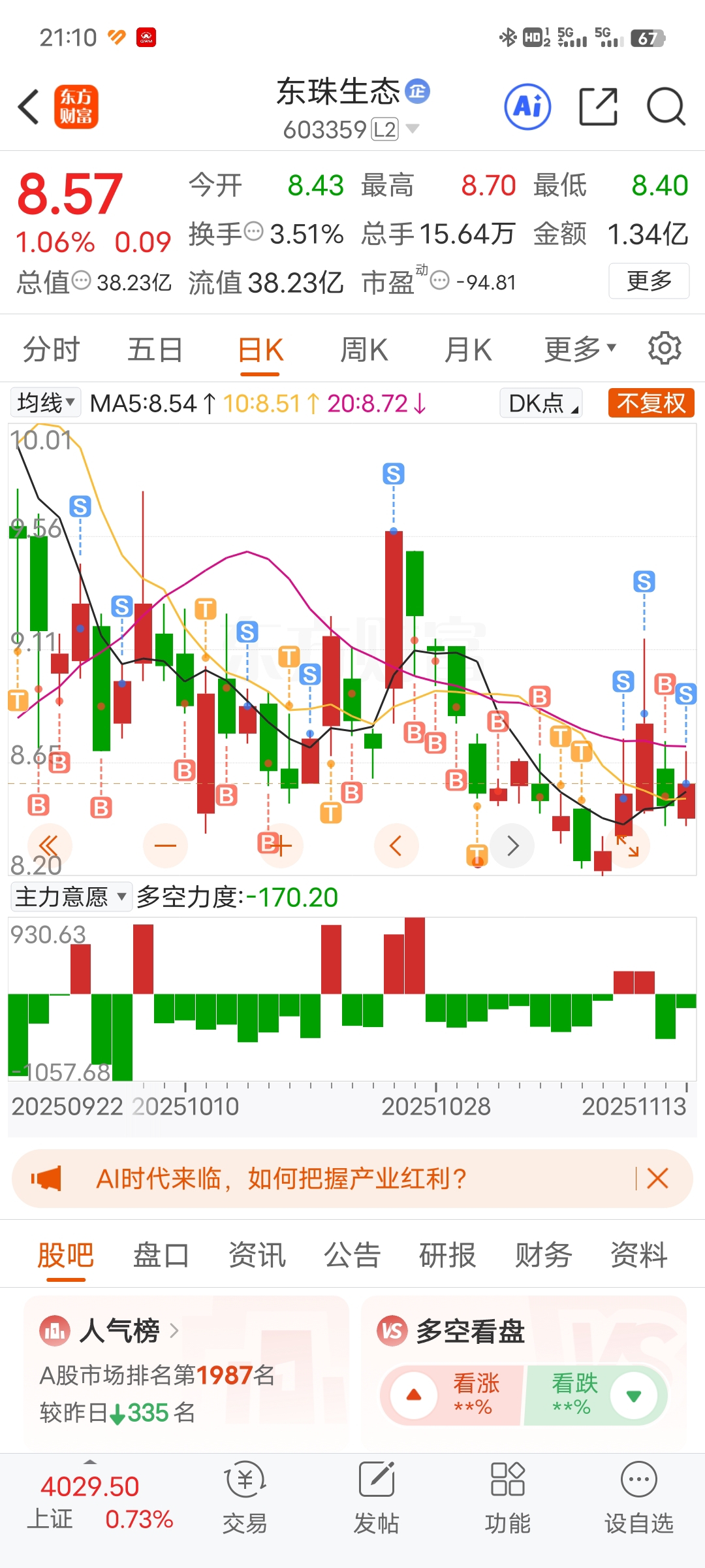 $东珠生态(SH603359)$ 我感觉这个主力不会让散户挣到钱,有点想放弃了